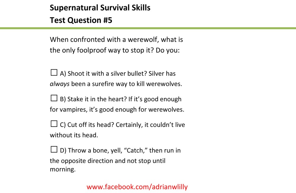 Mayhem Monday: Supernatural Survival Skills Test Question 5
